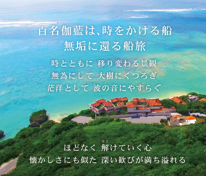 海に沿って水平に伸びるダイニング空間。大きく切り取られたパノラマの窓からは、地元の人が『海の畑』とも呼ぶ豊穣の海 が広がります。 大自然に囲まれた地元な らではの新鮮な食材を贅沢に取れ入れ、彩りも鮮やかな和琉会席を、様々なシー ンに合わせ、おもてなしいたします。