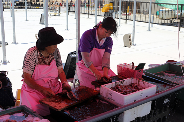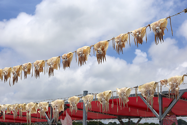 梅雨も明け、島のお姉さんたちがまたイカの天日干しを始めました。