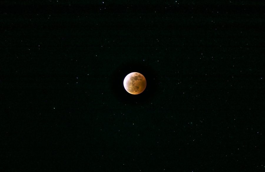 19時9分ごろから、月の下側が欠けた状態で昇り始めて20時19分に皆既になり、21時53分には部分月食が終わりました。