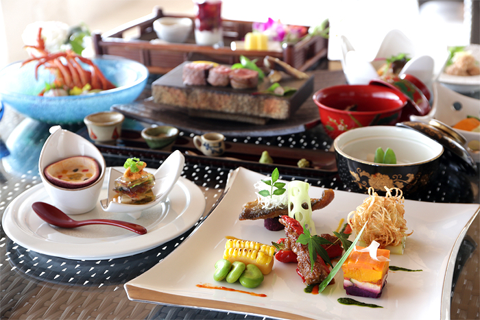 彩り鮮やかなお野菜と旬の海鮮をふんだに使ったお料理をご堪能いただけます。