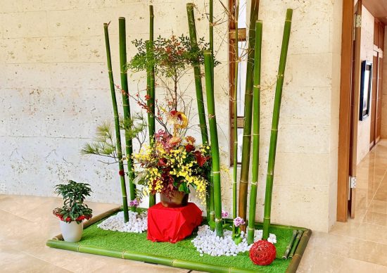 館内のお正月のお迎え 季節便りBy jcc2022-01-05寒の入りを迎え、冬の深まりを感じるこの頃、皆様いかがお過ごしでしょうか。 百名伽藍の元旦は冬晴れの空が広がり、穏やかな空気感に包まれた新年をお客様と共に迎えることができました。 この時期、沖縄の日の出が7時15分というこ…